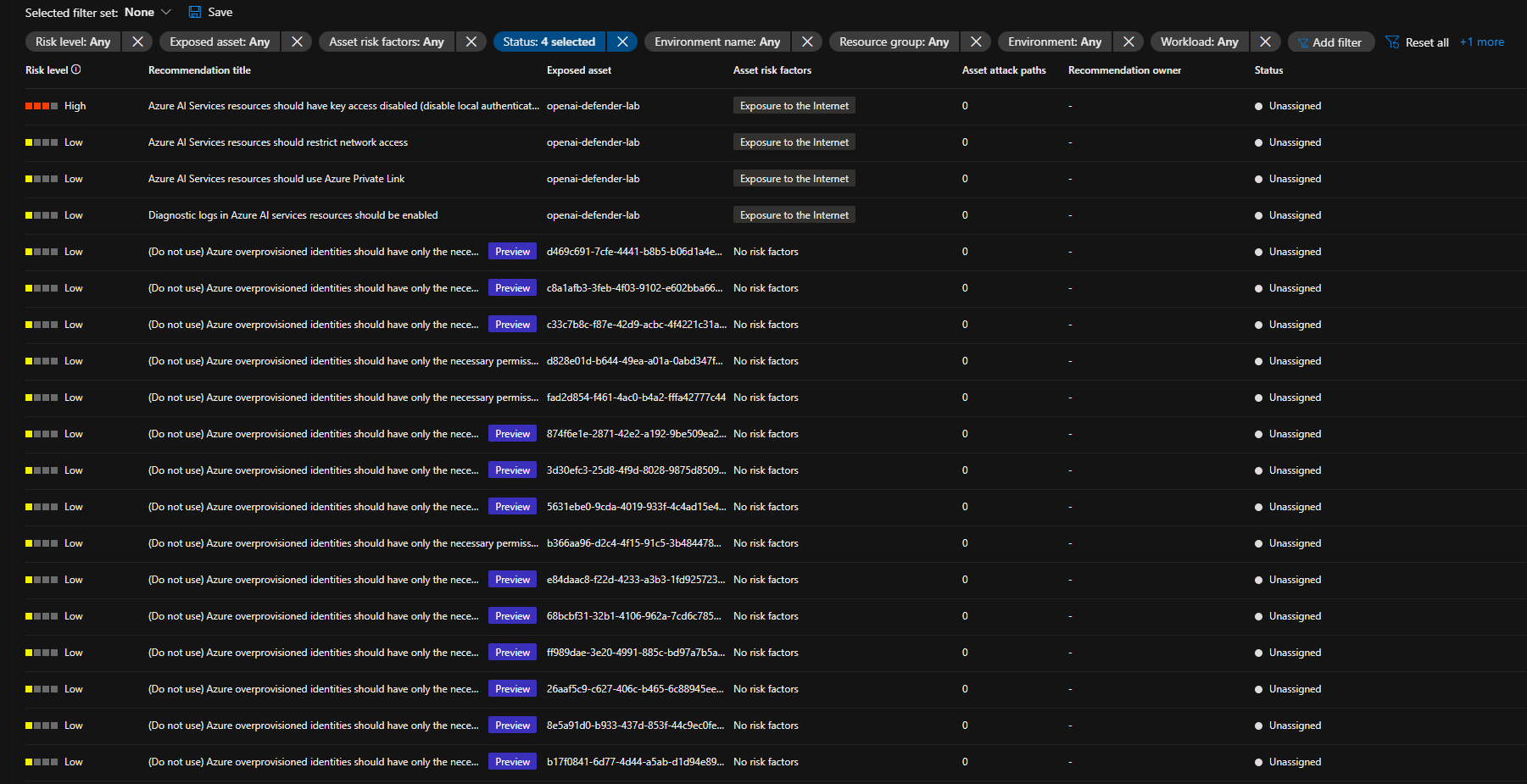 The recommendations you’re familiar with from Defender for Cloud are available in the unified portal. The filtering experience has been significantly improved. In the Azure portal, drilling down into issues often resets the filters, which has been a major pain point.