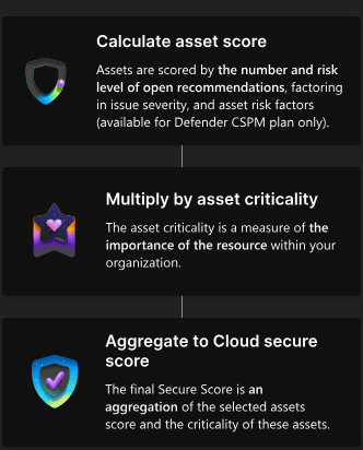 The new cloud secure score model introduces asset risk factors and asset criticality into the calculation. This produces a more accurate environment score by weighting the amount and severity of open recommendations against resource criticality in your organization.